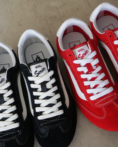 BLACKはスエード×ナイロンの異素材アッパーで軽やかさと奥行きを演出、RACING-REDはオールスエードで統一感ある表情に仕上がっています。