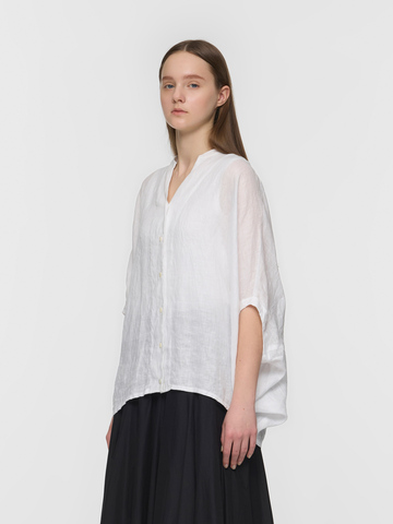 mizuiro ind|リネンスタンドカラーコクーンシャツ
