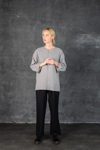 素材には、リトアニアで丁寧に織り上げられた上質なリネンを使用。ストーンウォッシュ加工が施されているため、はじめからやわらかく、肌に心地よく馴染みます。着るほどに風合いが増し、長く愛用する楽しみも感じていただけます。