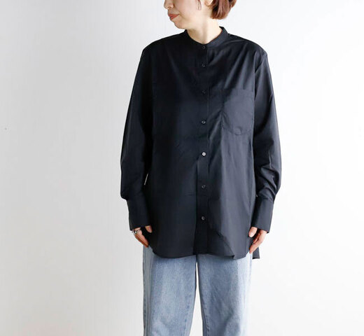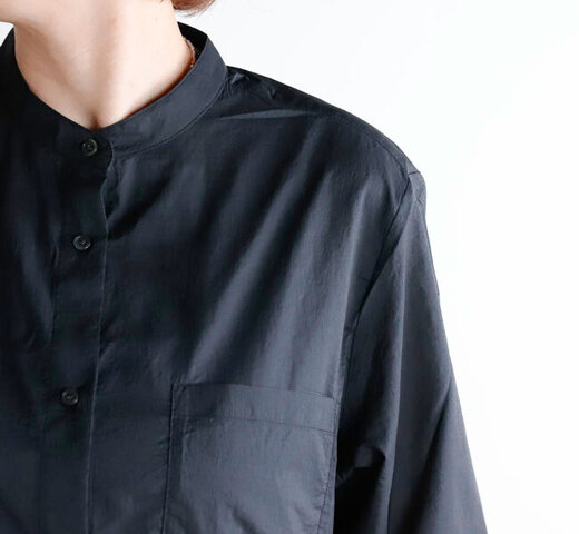 軽快な印象を与えるシアー生地のバンドカラーシャツ。