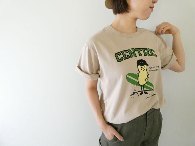 フロントには「CENTRE」のロゴと、サーフボードを持ったピーナッツのキャラクターが描かれ、ほどよく抜けた雰囲気に仕上がっています。