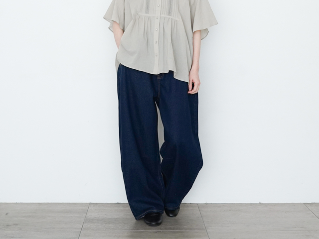 さらさら綿100% リラックスワイドパンツ / ライトデニムパンツ