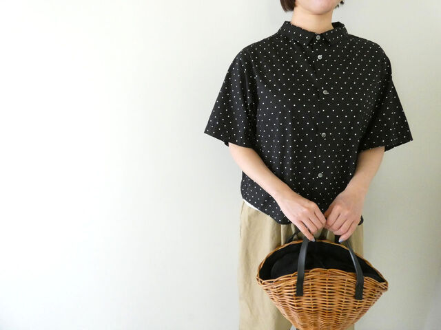 細かなドット柄がさりげなく目を引く、pritのショートシャツ。