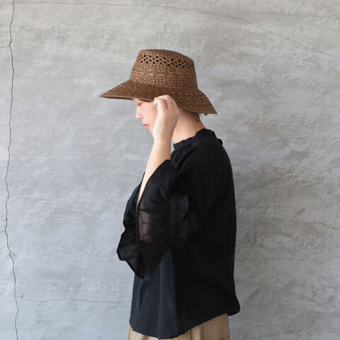 ナチュラルな風合いのペーパー素材を使用し、軽やかで通気性に優れた被り心地に仕上げました。