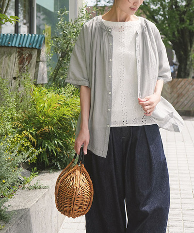 solamonat poche|リネンキャンバス ニットネックベスト poche-vv-tlc