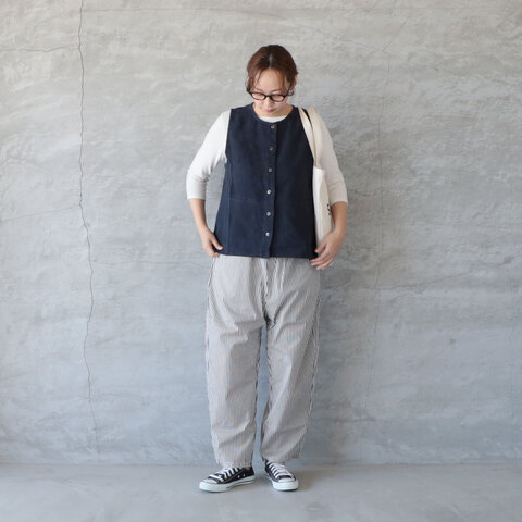 ウエストはリラックス感のある仕様で、デイリーに気軽に着用可能。