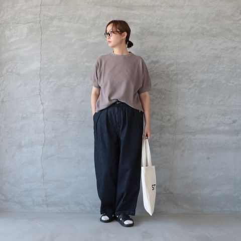 肩まわりはラグランスリーブ仕様で、ラインを気にせずリラックスして着られるデザイン。