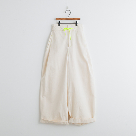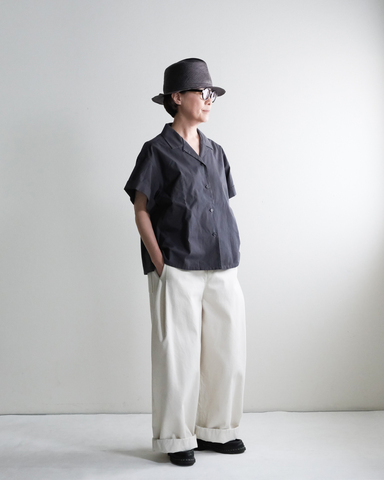 コクーンワイドパンツ(PT-4)は、ポケット近くに大きなタックを入れることで生まれる、立体的なサイドのカーブが印象的なデニムです。