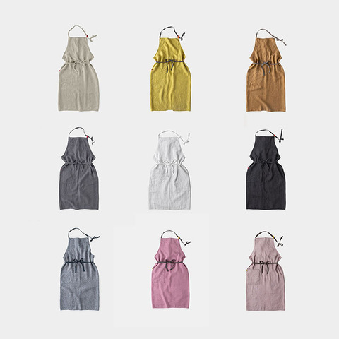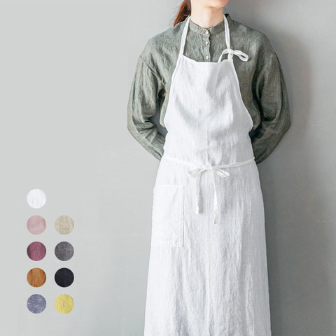 リネンは汚れが付きにくく落ちやすいので、洗った後も乾きやすく、清潔に使いたいキッチンにはぴったりの素材です。洗濯をしたら、パンパンと伸ばして干すだけ。リネンのしわを気にせずアイロンなしで着用できます。