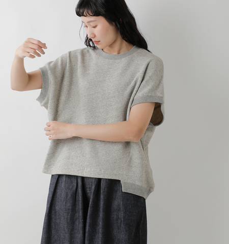 人気のアイテムをリピートオーダーした、当店だけの特別なアイテム。お袖と裾のデザインがアシンメトリーで、ベーシックなスウェットトップスなのに1枚で可愛らしく着られるかたちが人気です。