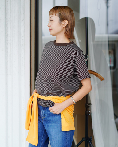 ボーダーのピッチや色味を確認し、大人の装いに自然と馴染む配色を目指しました。