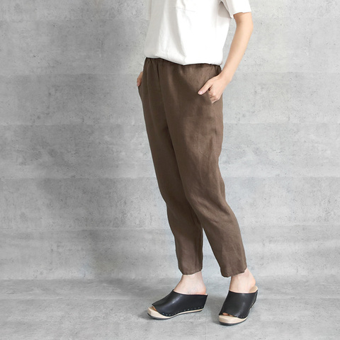 着心地ゆったり、見た目すっきり。厚地リネンのテーパードパンツ