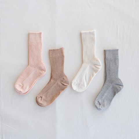通常ソックスに入れるナイロン糸やポリウレタン糸を使用せず綿のみで編み立てた綿100%の靴下です。シンプルなレギュラー丈で毎日でも履きたくなるようなアイテム。