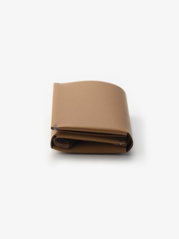 Piumaとはイタリア語で「羽」の意。その名の通り、薄さと軽さに優れた、上質な革の表情が引き立つ三つ折りの財布です。使用する革はベイビーバッファロー(水牛の子ども)。手触りがよく、きめ細やかな表情とベイビーバッファローならではの肌目が、高級感を醸します。摩擦熱などで艶が増すため、使い込むほどに艶のある表情に変化していきます。