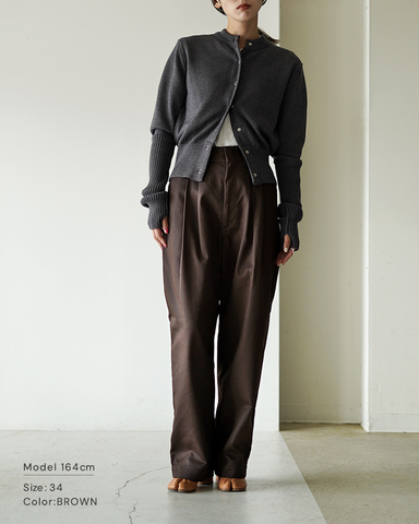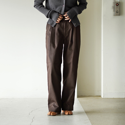 しっかりとしたハイウエストにツータックを入れた、スケーターパンツをイメージして作られた一本。腰まわりをすっきり見せながら、裾にかけて程よくボリュームを持たせたデザインが大人のこなれ感を演出します。