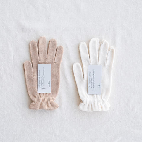 薄手で着け心地の良いケア用グローブです。オーガニックコットン100%のやさしい肌触りで、手の乾燥や冷え防止、運転中の紫外線対策におすすめです。