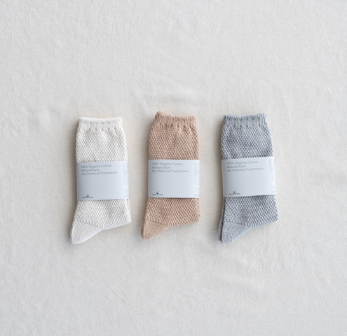 鹿の子編みは伸びもとっても良く、足にやさしくフィットします。ほどよい厚みでオールシーズン履ける、お店でも人気の1枚です。