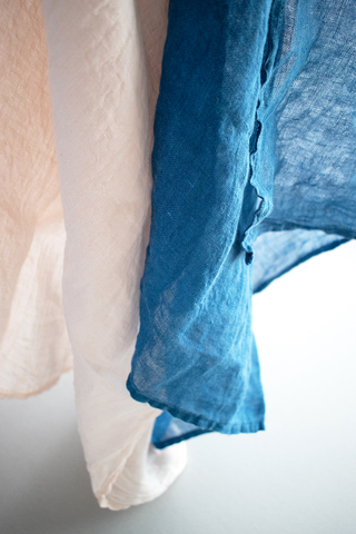 草木染めの自然な色合いとリネンの質感は、使うほどに、淡く美しく経年変化していきます。