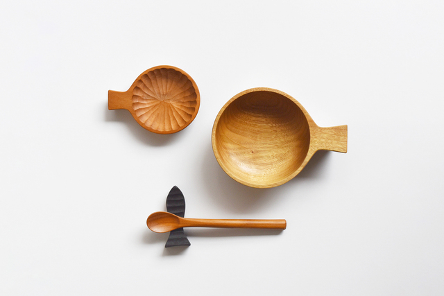 赤ちゃんの初めての器にぜひ選んでほしい、鹿児島の木で丁寧につくられた体に優しい器セットです。