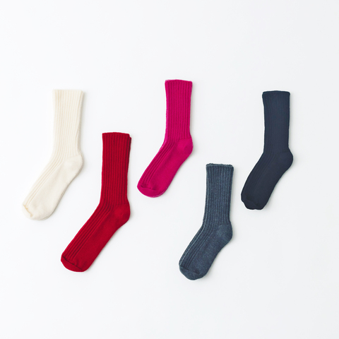 ふんわり柔らかな肌触りのjohaの靴下。シンプルなリブ編みは飽きがこず、定番アイテムとして長く着用して頂ける1足。
