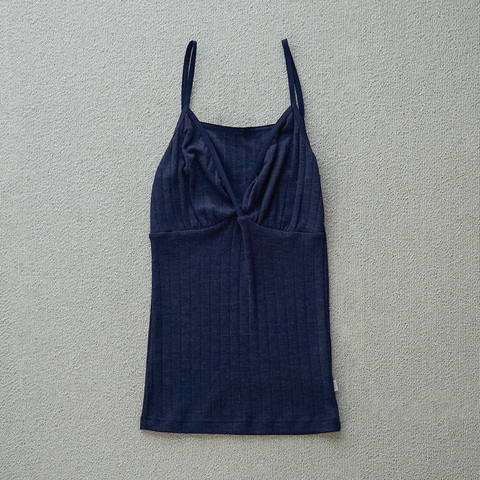 胸元で生地がクロスする、女性らしいデザインのキャミソール。