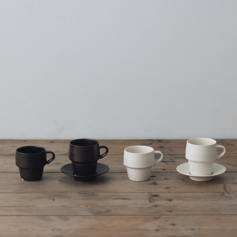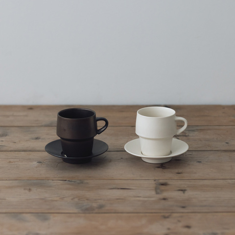 こちらは、純喫茶で出てきそうなウォーターグラスをイメージし、取っ手を付けたマグとソーサー。