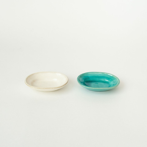 (上段)トルコ青、白磁はツヤがありつるんとした質感。