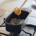 先日からご紹介している「4W1H コンパクトフライヤー」、実際に使ってみていちばん印象に残ったのが、あと片付けの気軽さでした。揚げ終わったあと、そのまま蓋をして置いておけるので、油を別の容器に移し替えなくていいんですよね。
