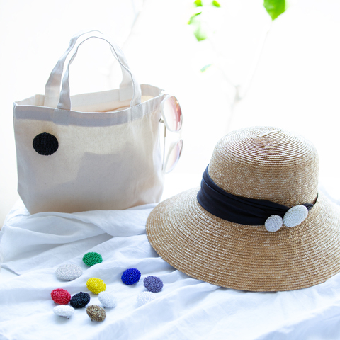 左から、ORBブローチ ホワイト、ロイヤルブルー,NOVAピアス ホワイト