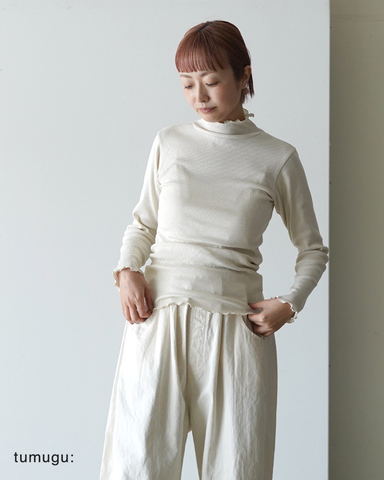 tumuguオリジナル生地を使用した柔らかくて肌当たりの良いリブカットソー。