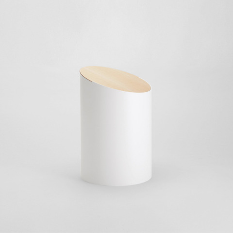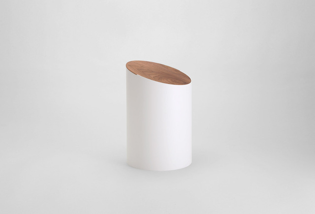 「シンプルであること」だけを限界まで追求して作り出されたダストボックス。丸太木を斜めに切り落としたようなプリミティブなフォルムが、彫刻のように静かに美しく佇みます。樹脂のボディに天然木の蓋が合わさることで、シンプルさの中に温かみを感じられます。