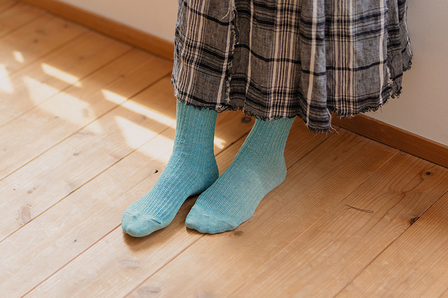 足にひんやりと心地よく、熱も逃がしてくれるので、夏の暑い日にもわたしにやさしい靴下です。