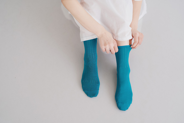 肌にやさしく、やわらかでしっとりした履き心地のクルー丈ソックス