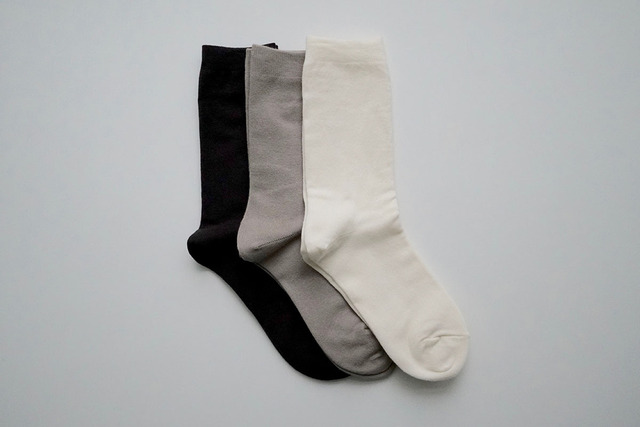 肌側に上質なシルク、表側にスムースなコットンを二重に編んだソックスです。