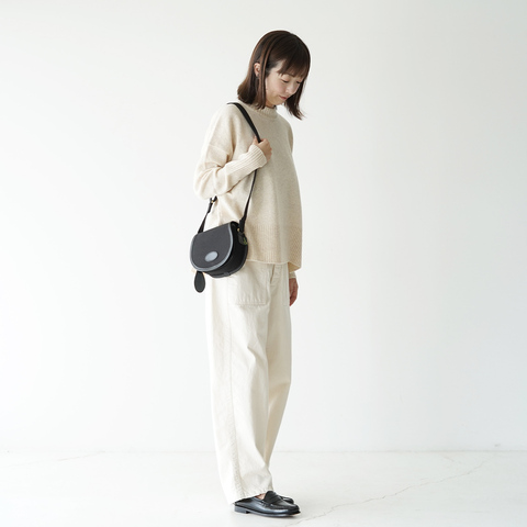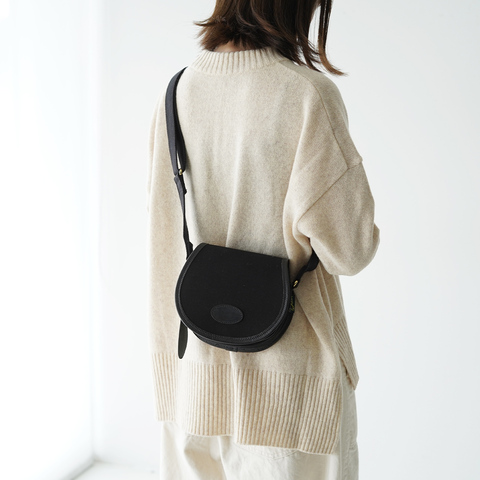 こちらは人気モデル“AIRE”のミニサイズ。曲線のフォルムが特徴的なデザインで、無駄を省いたミニマルなルックス。生地には防水加工を施したドリルドロップ素材を採用しブライドルレザーの縁取りを施すなど、優れた耐久性と機能美を追求した、老舗バッグメーカーならではのハイクオリティな仕上がりです。