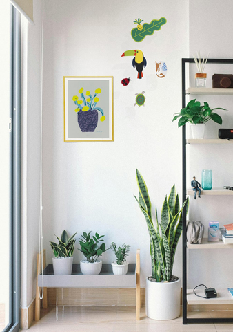 額に入れて飾っていただくと、お部屋を一気に華やかにしてくれますよ。メタリックな額にも、木製の額にも、どちらの雰囲気にもピッタリとフィットします。