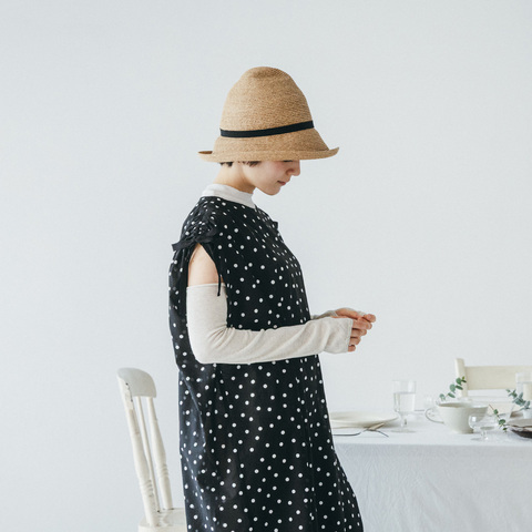 シンプルなアームカバーは合わせやすく、出かける前にさっと身につけれます。