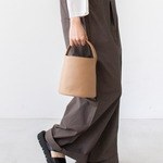 人気レザーブランドa(アー)から、バケットバッグのミニサイズが届きました。ステッチも最小限、シンプルで潔いデザインで、レザーの上質な素材感を存分に引き出したミニバッグ。aらしい黒ももちろん素敵ですが、今回のナチュラルなライトブラウンも新鮮ですね。
