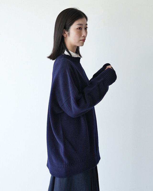 カシミヤブレンドのラムズウールでふっくらと編み上げました。