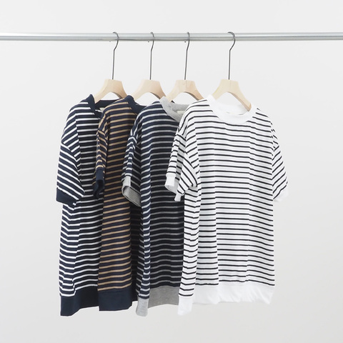 細めのボーダーと袖と裾のリブが印象的な110/2サイロプレミアムBD コンパクトTです。さらりとベタつかないサイロプレミアム素材は汗ばむ季節にぴったり。1枚でコーデの主役になるボーダーは夏場のワードローブとしてもってこいです。シンプルなボトムと合わせるだけでコーディネートが決まります。