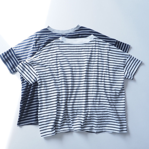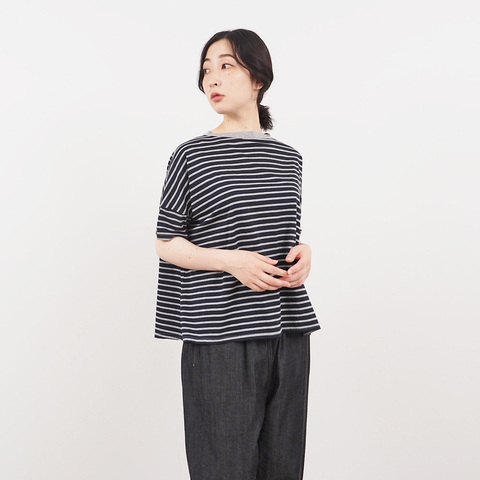 ピッチの細かいボーダーで、カジュアルすぎず大人っぽい雰囲気を演出します。