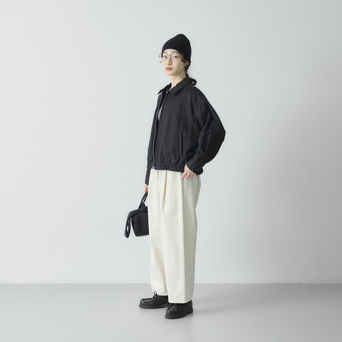 フロントに入れた深めのタックでウエスト周りにゆとりを出し、リラックス感のある履き心地です。