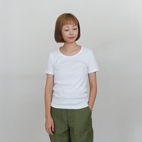「 丸銅コットンフライス スクープネック半袖Tシャツ 」