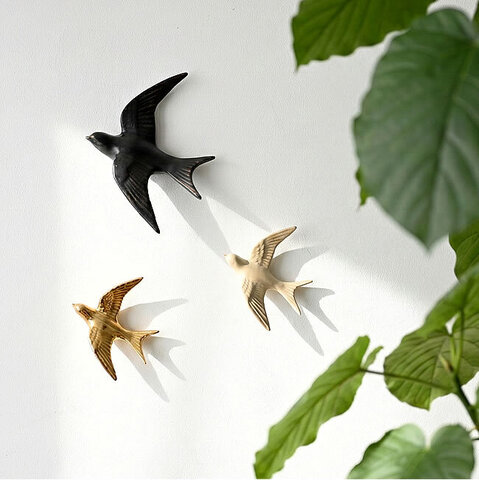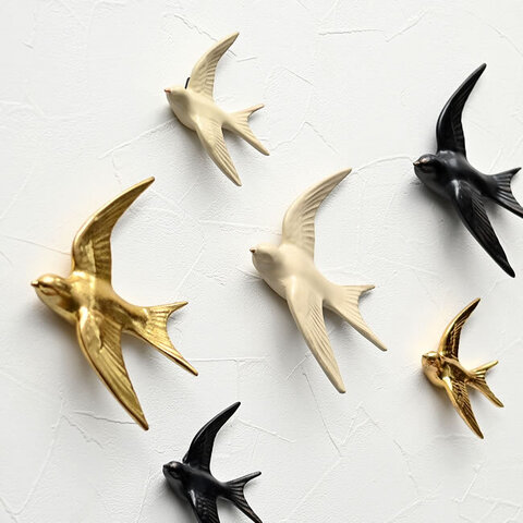 羽を広げて飛ぶ姿をかたどった立体的なウォールオブジェ。壁に飾るだけで軽やかな動きが生まれ、シンプルな空間にも表情が加わります。