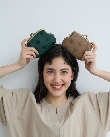 ナチュラルなレザーにキャンディのような水玉模様が大人ガーリーながま口です。