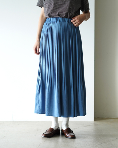 裾に向かってプリーツを消す設計により、腰まわりはすっきりと、足元には軽やかな動きを演出。甘さを控えたシルエットで、カジュアルからきれいめまで幅広く馴染みます。