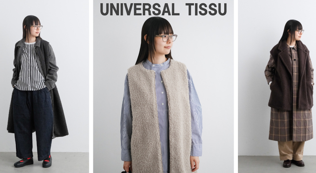 UNIVERSAL TISSU|オリジナルウールへリンボンスタンドカラーコート / TS243CO080