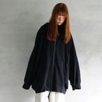 太めのリブと特徴的なシルエットが魅力の「Big Hoody」 。 1年を通して着られる、しっかりとしたパシフィック裏毛を使用しています。 タオル地のようにパイル状に編まれており、空気を含むことで快適な着心地を実現。 男女問わず着用できるユニセックスアイテムです。 1枚で着るのはもちろん、羽織りものと合わせてもゆったりとしたシルエットを楽しめます。 ※VUyで展開していたパーカーと同じ形です。