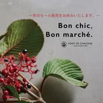 私たちは、いまの季節に寄り添ったポンデシャロンの着こなしが 心地よいものであることを大切に、新しいシーズンの商品をご提案しています。 ポンデシャロンらしい着こなしを、季節とともに気分よく楽しんでいただくために 今シーズンアイテムのセール販売をお休みすることにいたしました。 これからは変わらぬ価値を、安心してお買い物していただけます。 Bon chic, Bon marché. "素敵な毎日のための、いいお買い物"