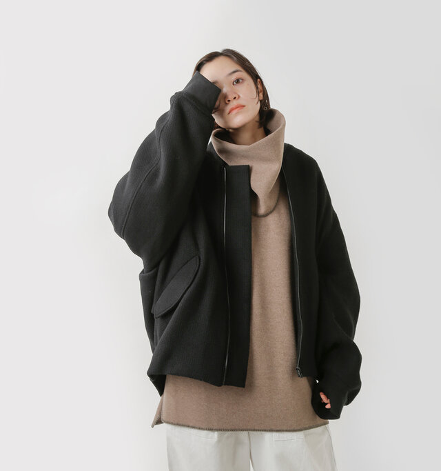 mao made|ウール 圧縮 ダブルジップ クルーネック ブルゾン 551127